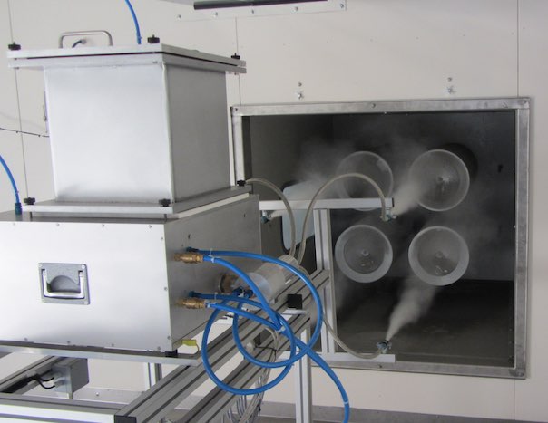 Dust feeder NDF300-3FI with injector dispersing unit Especially designed for ARAMCO testing with ARAMCO test dust Dust feed rate of 7 kg/h continuously over 50 hours Flow of dispersed dust distributed on 4 nozzles (optional) On platform balance with four load cells C3 Additional dust container for approx. 50 liters Built-in flexible container approx. 9 liters - which is agitated by external paddles to prevent bridging of agglomerating dust for modifications ask our engineers |